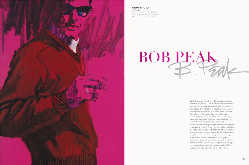 Unele dintre imagini sunt raritati, publicate si reproduse pentru intaia data in acest album. Altele sunt neasteptat de romantice, amuzante, originale, cum sunt desenele feminine, fluide, ale lui Andy Warhol pentru parfumurile Schiaparelli (de ce uita lumea ca, inainte de a deveni pictor, Warhol a fost ilustrator?). Altele, ca cele semnate Bob Peak, sunt atat de retro-moderne, incat par genul la care au visat creatorii serialului Mad Men…