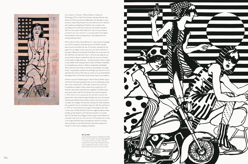 Multe sunt desene comisionate special de revistele glossy de moda si lifestyle din vremurile respective (Vogue, Harper’s Bazar, Life) pentru coperti, portrete sau piese-cheie din colectiile unor designeri, in timp ce altele sunt afise ultra-cunoscute pentru musicaluri, piese de teatru, filme sau reclame.